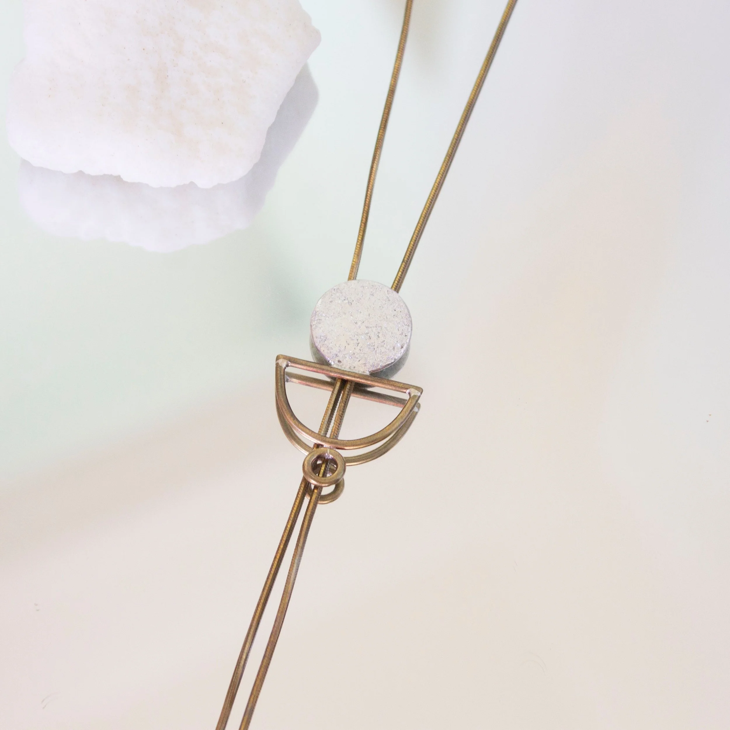 textured silver disc and stacked brass shape bolo