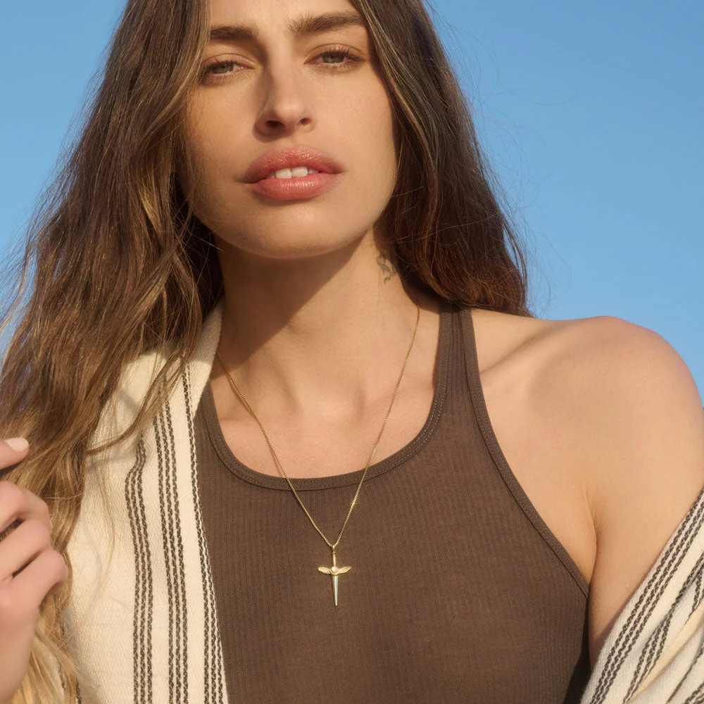 Stay protected at all times from danger and negative energy with the intricate Flying Dagger Amulet. This piece features genuine moonstone to offer clarity of mind, while also keeping you safe and out of harm’s way. Remember, the Flying Dagger never misses its mark.